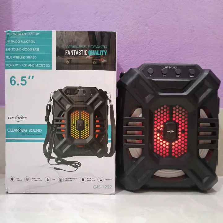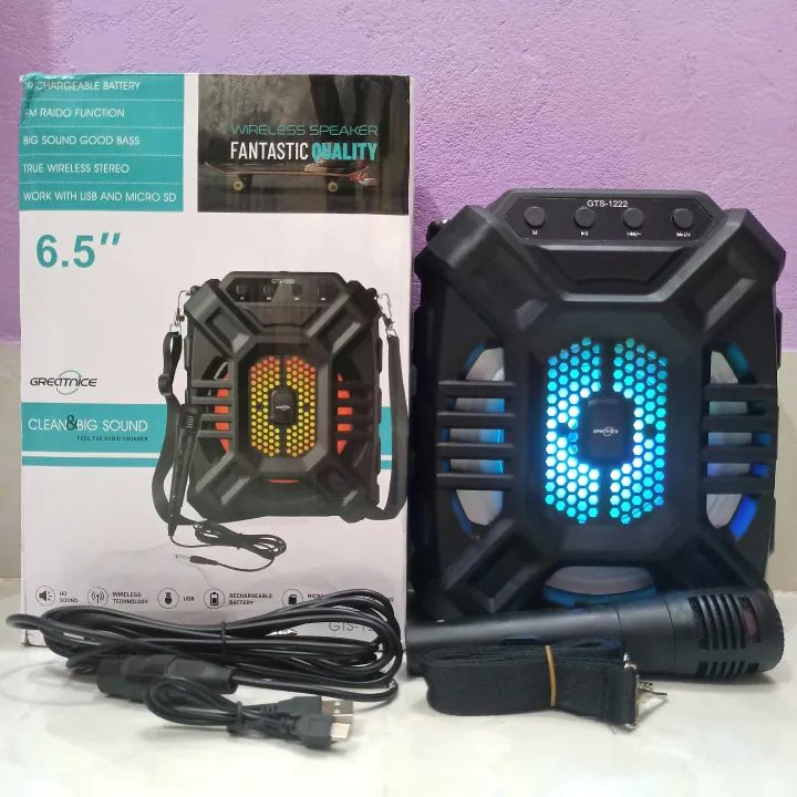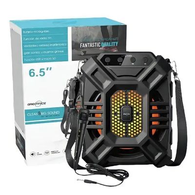 GREATNICE GTS-1222 Bluetooth Speaker – RGB Light, USB/TF Card/FM Radio, Karaoke, 6.5″ Driver, 1200mAh Battery, Mic Support